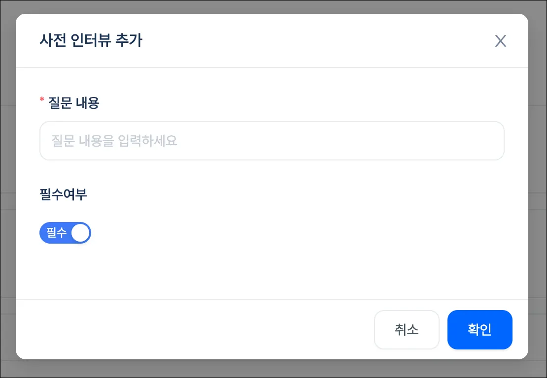 사전인터뷰 : 지원단계에서 문의할 내용을 추가/삭제할 수 있습니다.