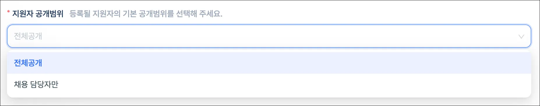 지원자 공개범위 : 전체공개를 선택하면 조직멤버 누구나 공고를 볼 수 있습니다.
