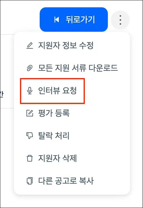 지원자 상세 추가메뉴에 인터뷰 요청 기능을 제공합니다.