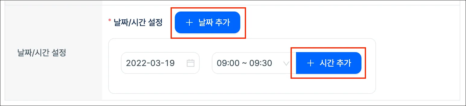 요청방식이 직접등록인 경우 하나의 날짜와 시간만 설정 가능합니다.