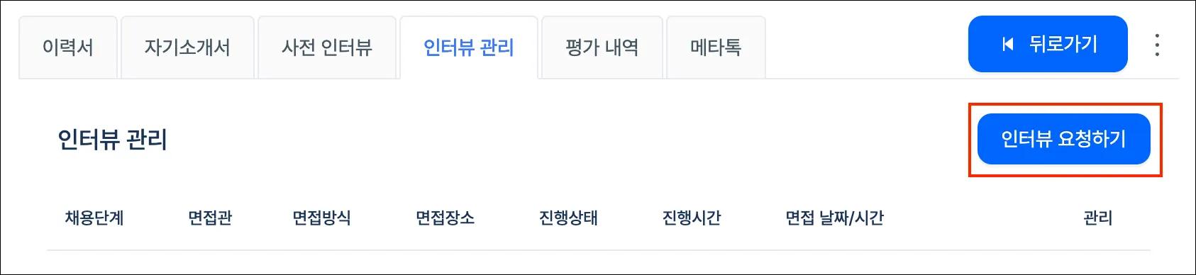 인터뷰 관리화면 인터뷰 요청하기 버튼을 이용합니다.