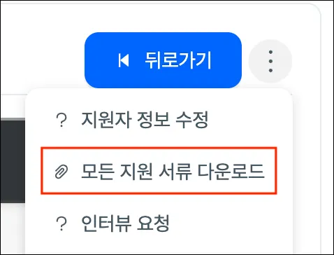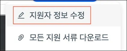 우측에 다운로드 버튼을 클릭하면 지원서 별로 다운로드가 가능합니다.