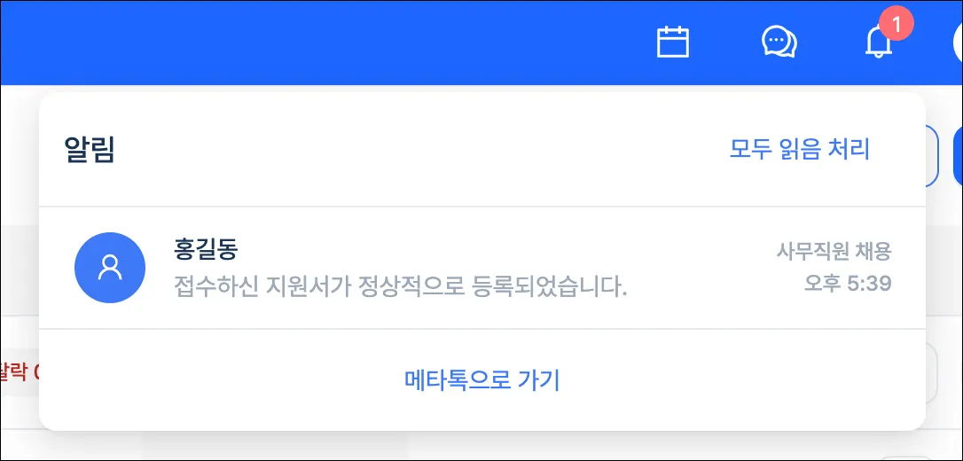 채용 담당자는 지원서가 접수되면 아래 3가지 방법으로 접수 알림을 받을 수 있습니다.