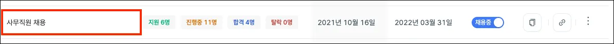 채용공고 리스트에서 제목을 클릭하면 지원자 관리 화면으로 이동합니다.