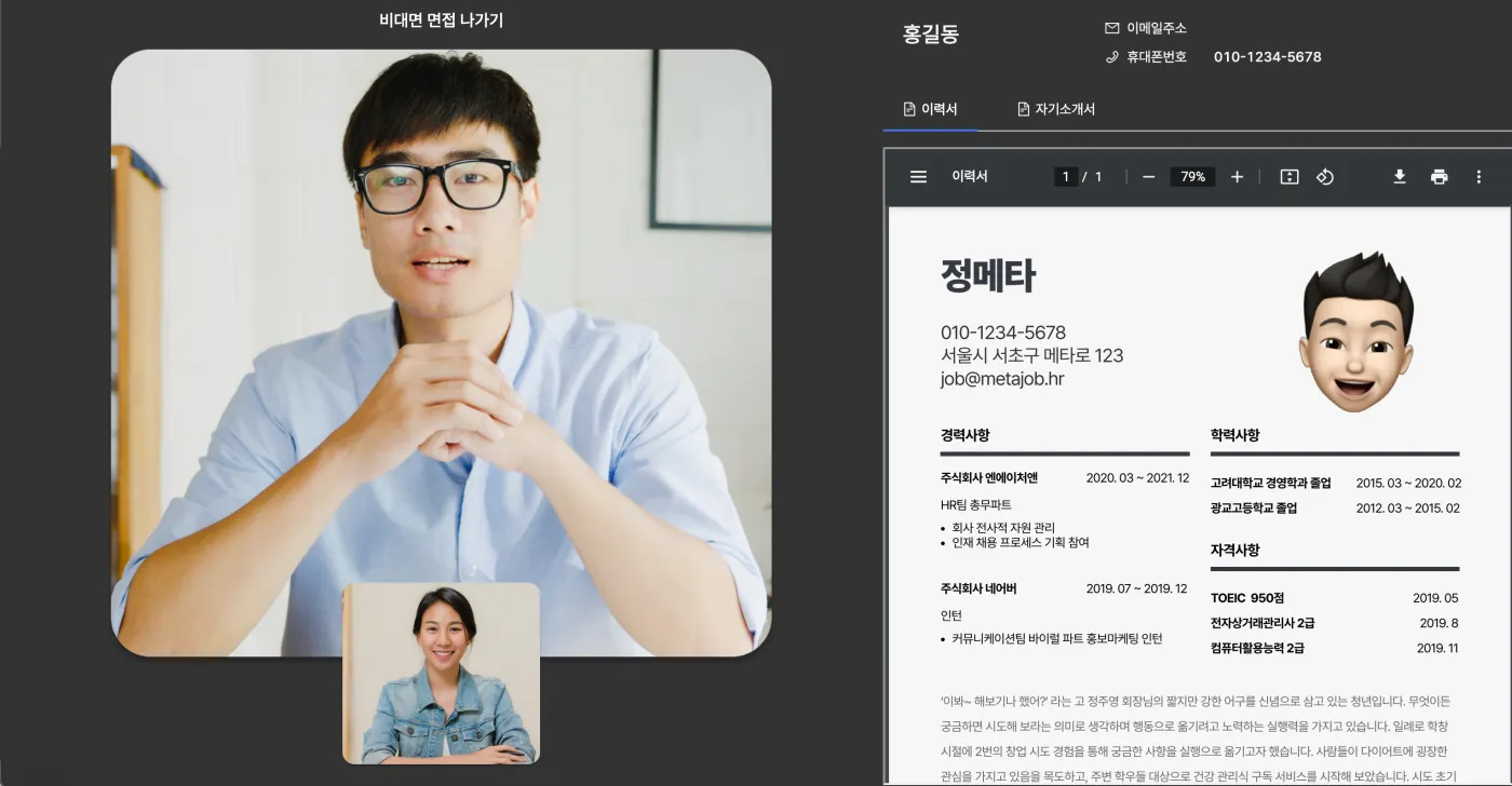 지원자가 비대면 인터뷰를 시작한 화면입니다.